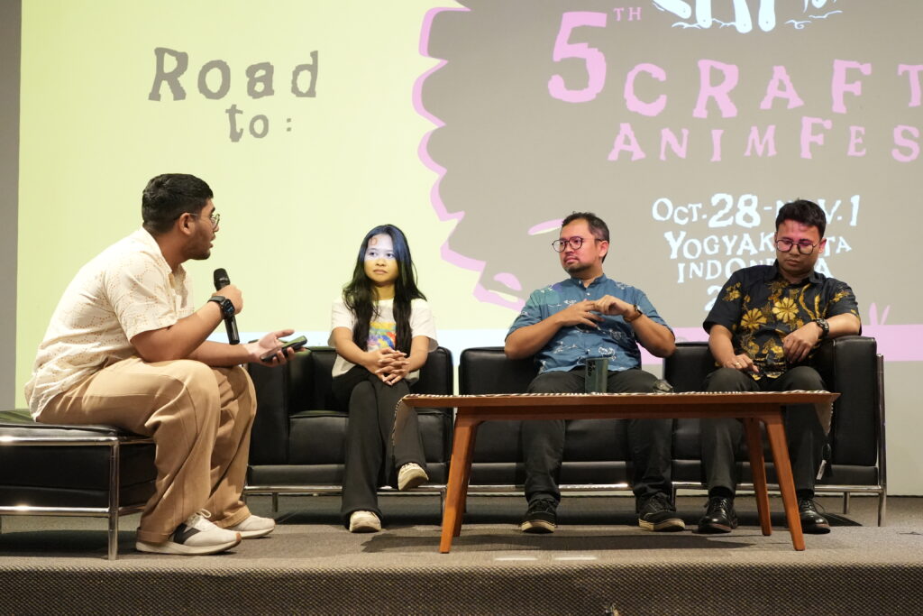 Saya membuka diskusi dengan menyampaikan bahwa keberagaman adalah fondasi penting bagi ekosistem animasi yang sehat. Di CRAFT, kami berusaha keras menciptakan ruang di mana semua bentuk ekspresi visual bisa tumbuh mulai dari film dengan prinsip klasik 12 animasi, hingga karya eksperimental yang tidak mengikuti pakem teknis konvensional. Ketika gaya, cerita dan pendekatan kreator beragam, maka pasar juga terbuka lebih luas dan regenerasi pun lebih mungkin terjadi. Tanpa keberagaman, industri mudah jenuh dan sulit tumbuh lintas generasi.