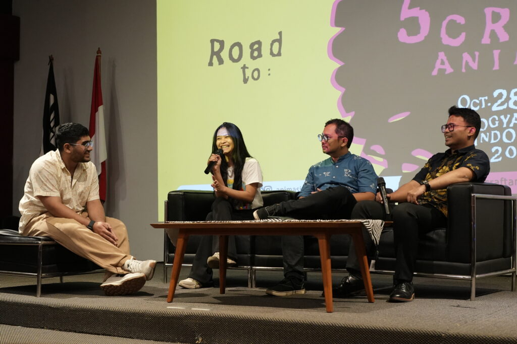 Andara kemudian menjawab dari sudut pandang gaya visual. Ia membayangkan animasi Indonesia suatu saat akan menjadi semacam “galeri hidup” yang kaya rupa seperti pameran di Sarinah atau Grand Indonesia, di mana kita bisa melihat berbagai kain Nusantara seperti batik, tenun atau lurik. Tapi kali ini, semua motif itu bergerak. Metafora ini menjadi gambaran tentang animasi Indonesia yang beragam dalam gaya, pendekatan dan ekspresi, namun tetap memiliki ruh yang hidup dan khas.
